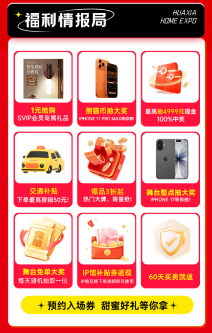 除此之外,面向消费者的互动活动更是亮点纷呈。华夏家博会南京站推出专属折扣、下单抽现金等福利,切实降低装修成本。下单解锁“多层福利暴击”!现场下单超划算!省钱力度直击心底。对于南京消费者最关心的“性价比”,本次家博会从“折扣、优惠、保障”三方面发力,结合当地装修需求,让每一分钱都花在刀刃上,真正实现“买得值、用得好”。